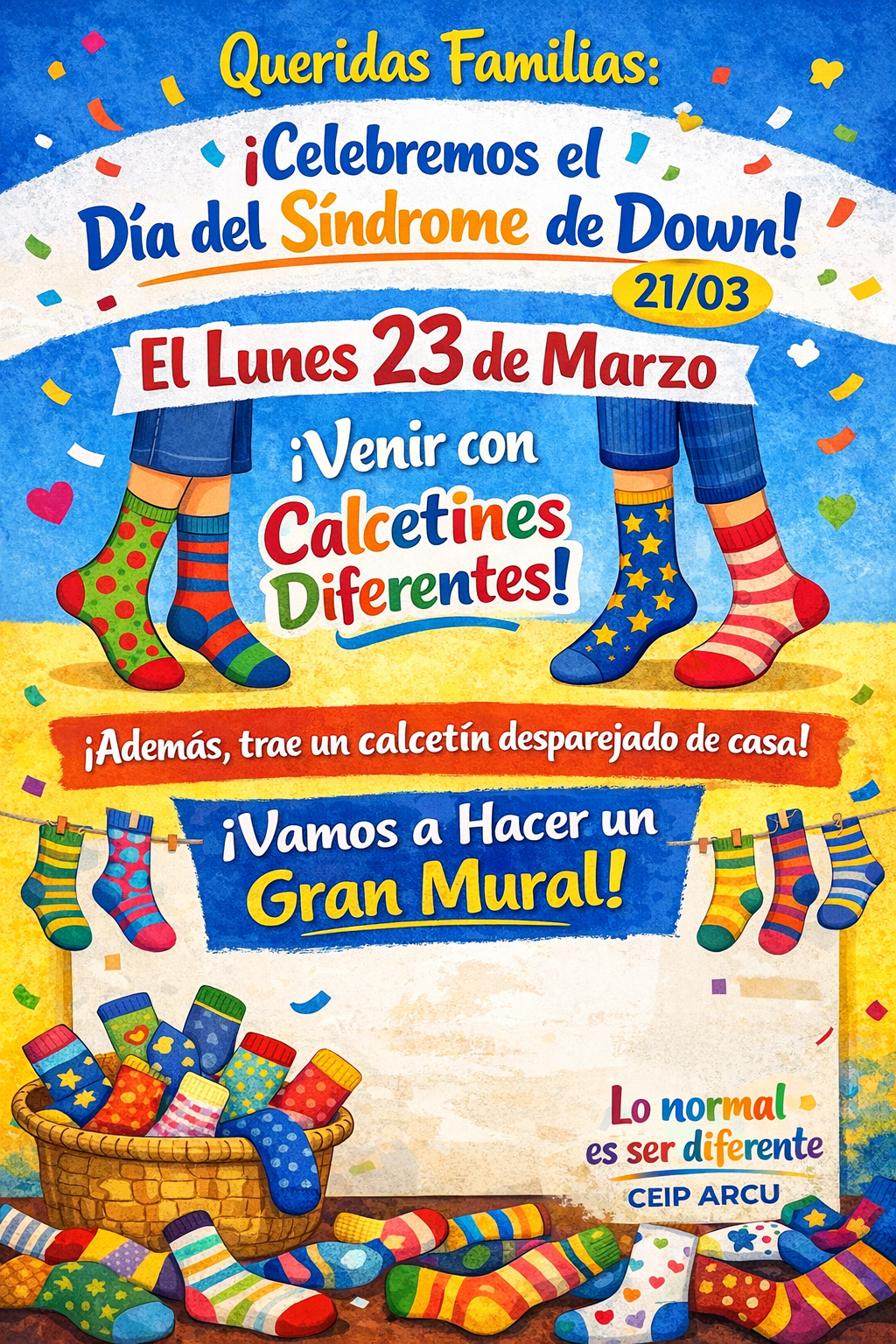 CELEBRAMOS DIA MUNDIAL S. DOWN. 20 de marzo de 2026 🌈 ¡Celebremos la Diversidad! Nos unimos al Día Mundial del Síndrome de Down Queridas familias, Un año más, nuestra comunidad educativa se llena de color y entusiasmo para conmemorar el Leer más »